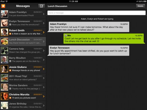 features integrated for greater fun. With Pinch Group Messaging, instant group communication