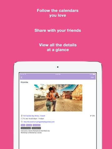 Want to know what’s happening around you? Pink Hermit brings you all the information about upcoming events into an easy to use app. You can browse or search by your favorite interests, venues, or date. When you find an event you like, you can save it for later, or share the details with your friends. You can also control your events feed by following calendars that match your interests (categories, venues, artists...)