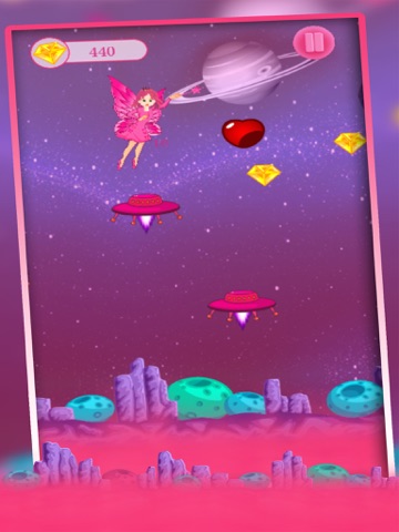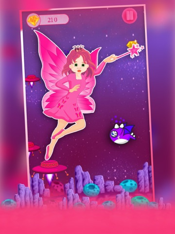 In this new adventure game you will have some fun with one of the most beautiful pink princess. Be careful there are some aliens flying on her way to drop her down, also help her not to fall down.