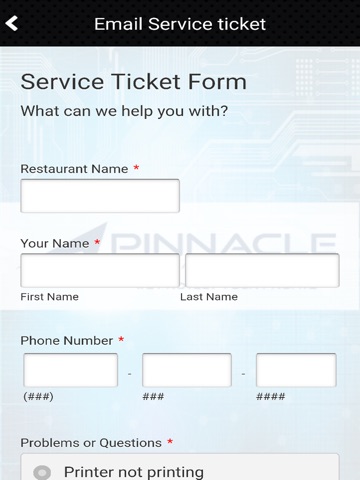 -Email Service Ticket form -Shop for product