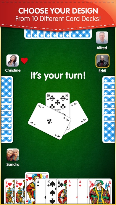 Pinochle is intended for an adult audience. According to German law, Pinochle is not a gambling game. In our app, there is no real money and no real prizes to win. Practice or success in casino games without real winnings ("Social Casino Games") does not imply future success in games for real money.