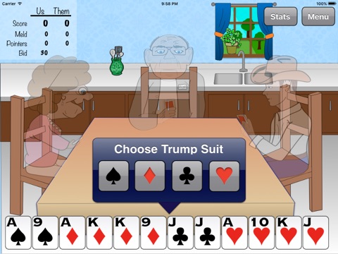 Obviously these creators havent played pinochle at their senior center. Also they have little concept of the odds of getting such hands as double pinochle, or a double run. Tell me how you can randomize the players skill level and not just program them to make stupid mistakes. This game is not fun and they even have it rigged so its hard to give them one star. Bid or bunch my a**. I want my money back.