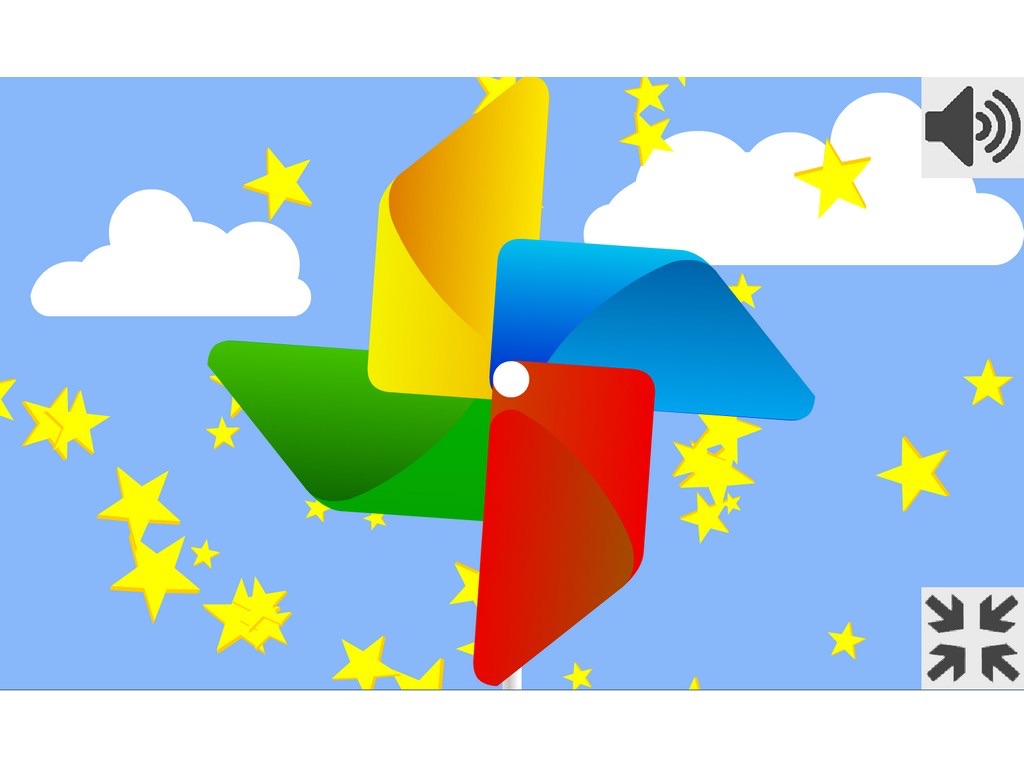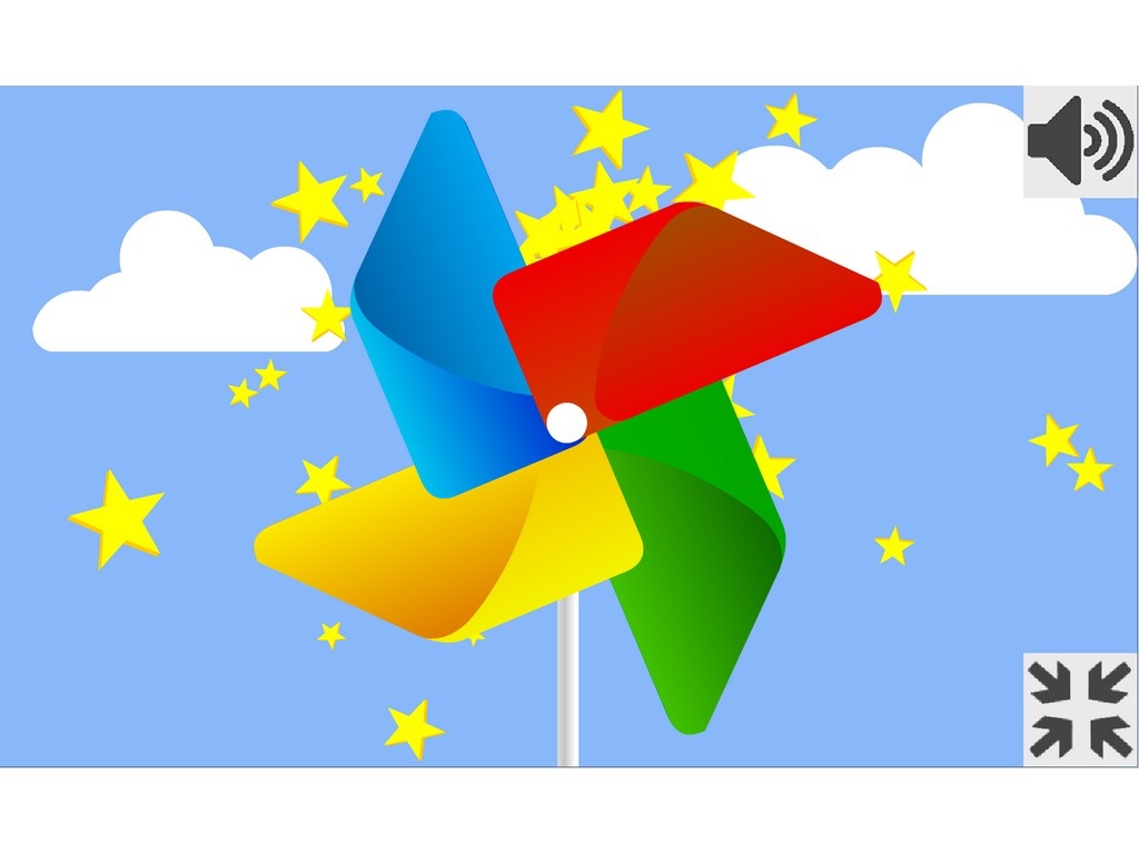 Blow into the headset to spin the pinwheel and make stars fly around.