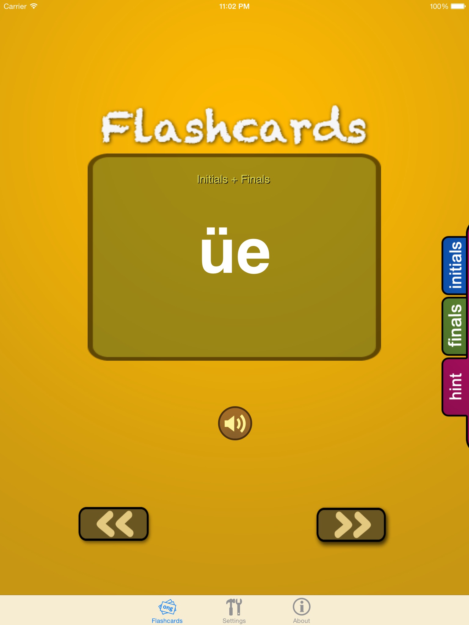 Learn to pronounce the initials and finals of Pinyin with handy flashcards. Cycle through them quickly and gain mastery with your pronunciation by listening to the recordings. Each Pinyin also includes a very descriptive explanation of how to pronounce the Pinyin from common English sounds and a description of the mouth, tongue and lip placement needed to pronounce the sound properly.