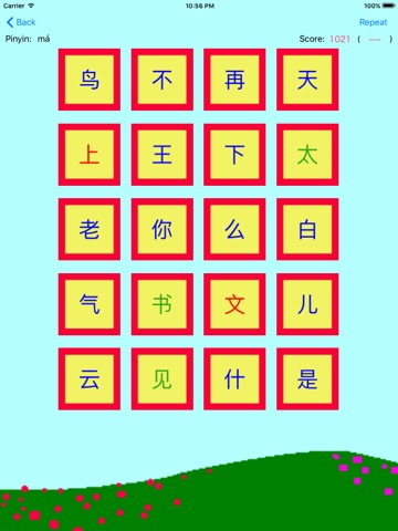 In the game mode for each level, 20 characters will be randomly chosen for you to identify based on their pinyin and sound. See if you can get the best score!