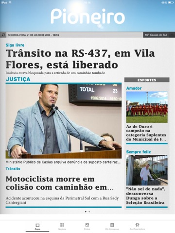 Com o aplicativo do Jornal Pioneiro, do Grupo RBS, você pode acessar o conteúdo online do principal jornal do interior do Rio Grande do Sul, atualizado 24 horas por dia, sete dias por semana.