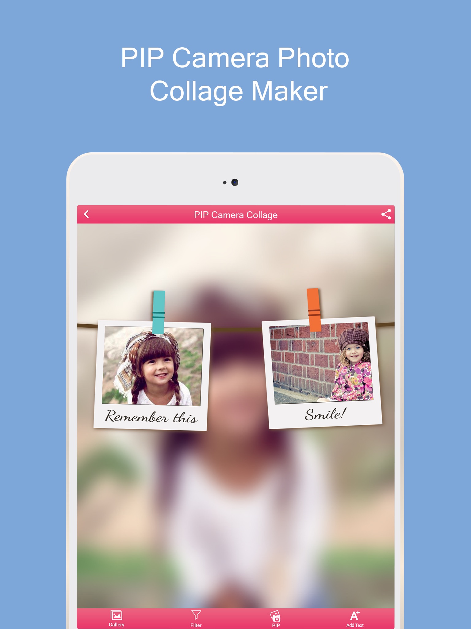 PIP Collage Maker having facility to create PIP COLLAGE PHOTO in our application with best pip frames. Here you have to select at least two PIP photo for fitting in PIP collage maker app.PIP Collage Maker will helps to add effectiveness in your two photos with amazing PIP frames. You can select photo from gallery or camera & edit image by applying very sweet frames. At last save image, share image with your friends, family and followers.