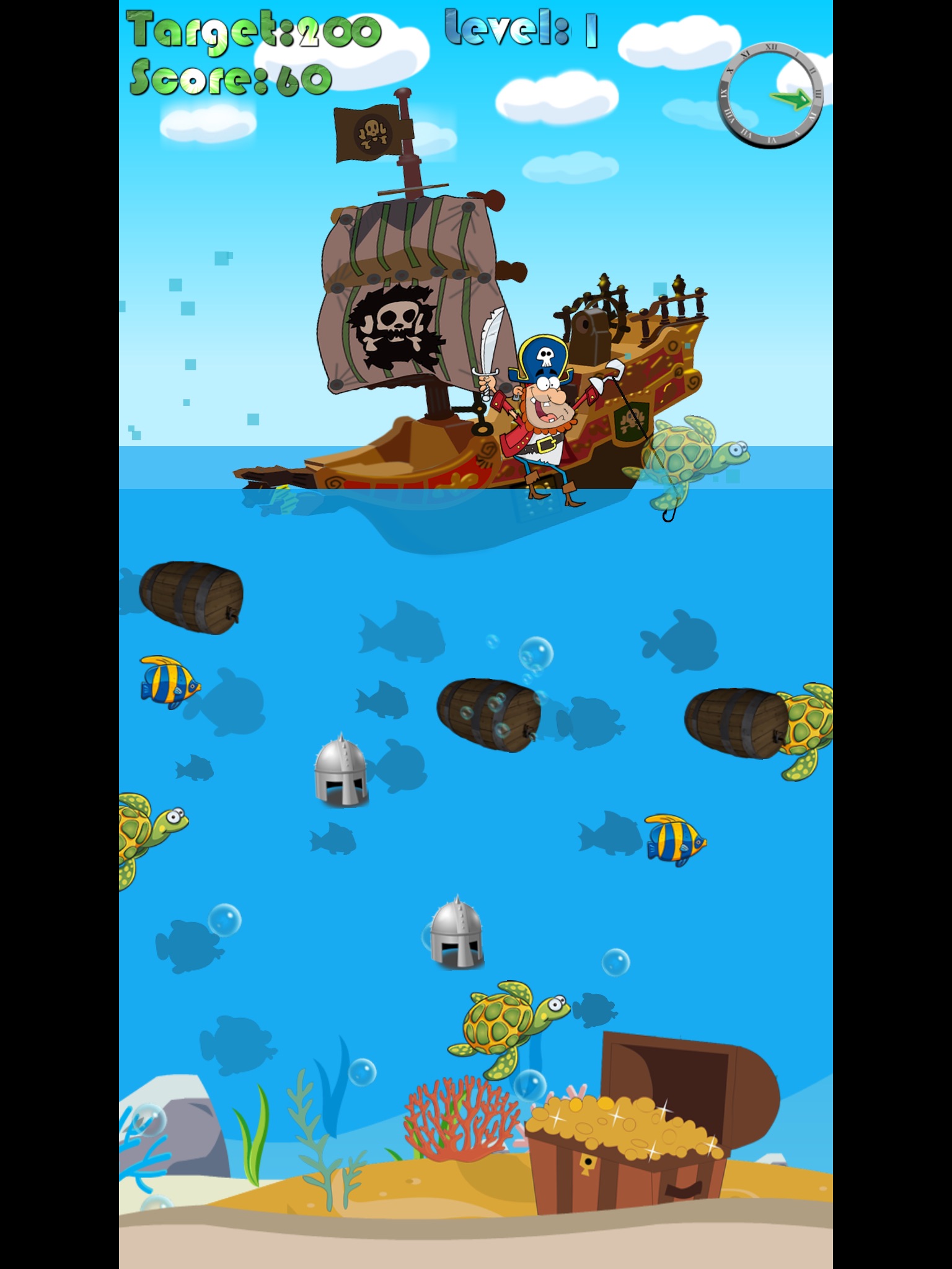 Pirate Treasures Fishing Hunting Ship in Caribbean is on a quest for treasures toss the line and fish for jewels and treasure the deeper level get the bigger the reward.
