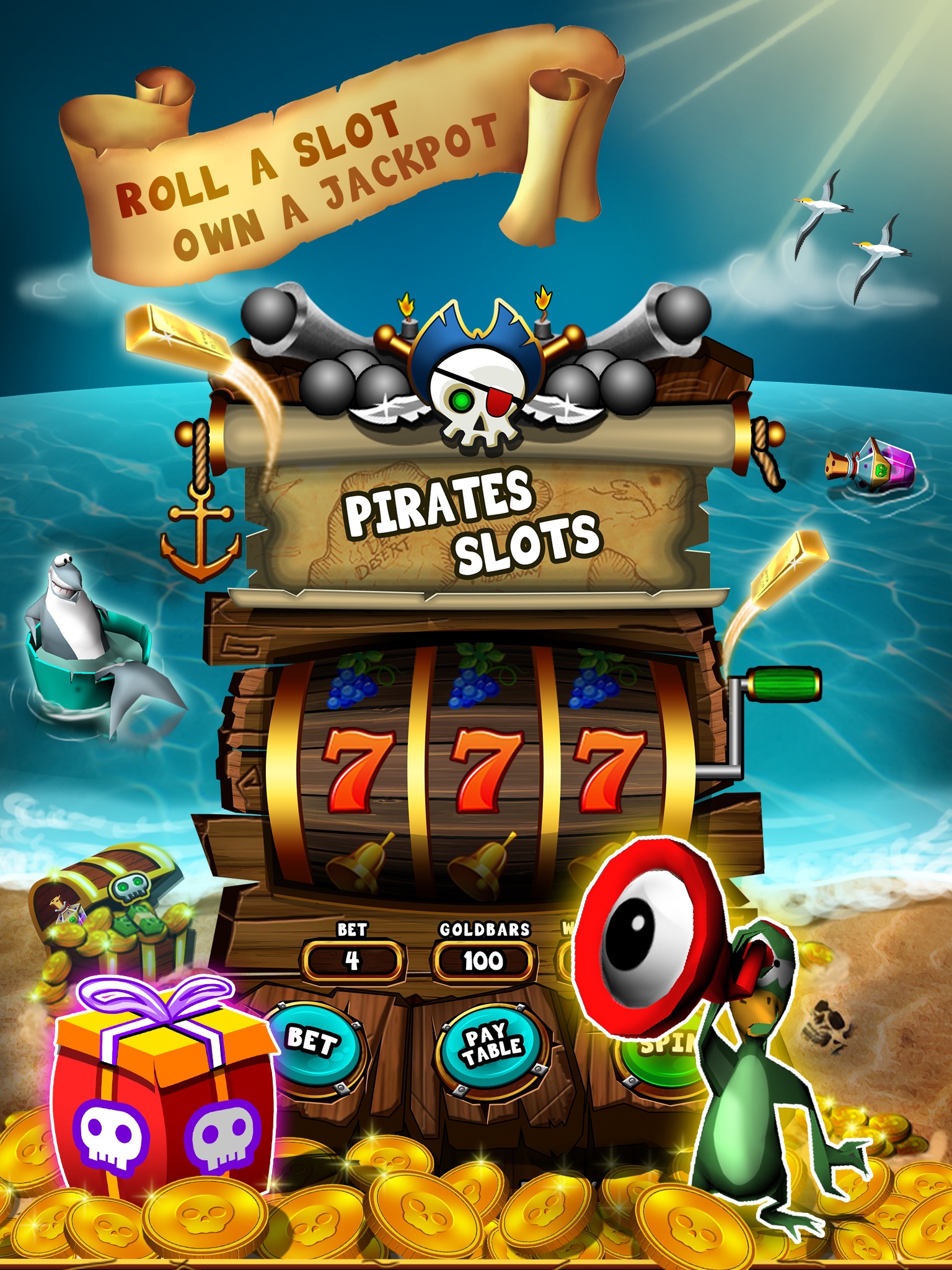Play like a Pirate, drop constant flow of coins, attack with ship cannons, spin casino style slots, try your luck at fortune wheel and quest through the seven seas and advance through ocean by unlocking wonderful items and powers.