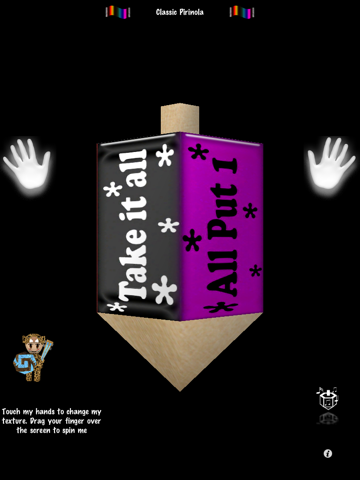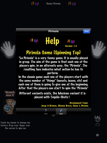 Now, we are pleased to introduce the classical version of the traditional mexican game "La Pirinola" (Spinning top) yehaaa!. Finally, you can have it in your iPad/iPhone/iPod Touch and make more enjoyable many parties !