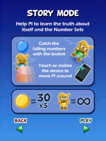 The game tells the story of Pi, a number who needs to find the truth about his identity. To make his dream come true, you need to help him selecting the falling numbers with the correct sets.