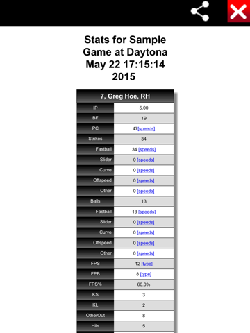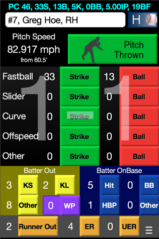 Pitch Counter Pro lets you track your pitchers performance with detailed stats, built-in speed estimator, and customizable rest warning alerts. Get real-time stats on your pitchers including Pitch Count, Strikes, Balls, Batters Faced, Strikeouts Swinging, Strikeouts Looking, Base on Balls, Hit By Pitch, First Pitch Strike, Innings Pitched, Earned Run Average, and more! Optionally estimate the speed of every pitch thrown and decide when your pitcher is losing his stuff. Includes built-in rest warnings that let you know when your pitcher has reached pitch count rest limits for your pitchers age group. Easily provide pitch count information to umpires and team managers during the game.