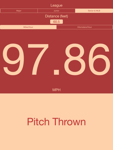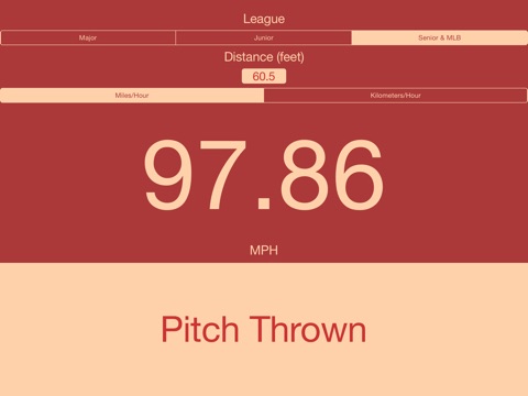 Ever wanted to know how fast a baseball player is throwing and didnt have a radar gun on hand? Then this app is for you! It is now super simple to see how fast a pitcher is throwing. Just tap the button when the ball is thrown and then once more when it is caught to receive one of the most accurate pitch speeds available without a radar gun. Pitch Speed Lite has default settings for the most common leagues as well as the ability to enter custom pitching distances. Upgrade to Pitch Speed to automatically save the speeds for previous throws and much more.