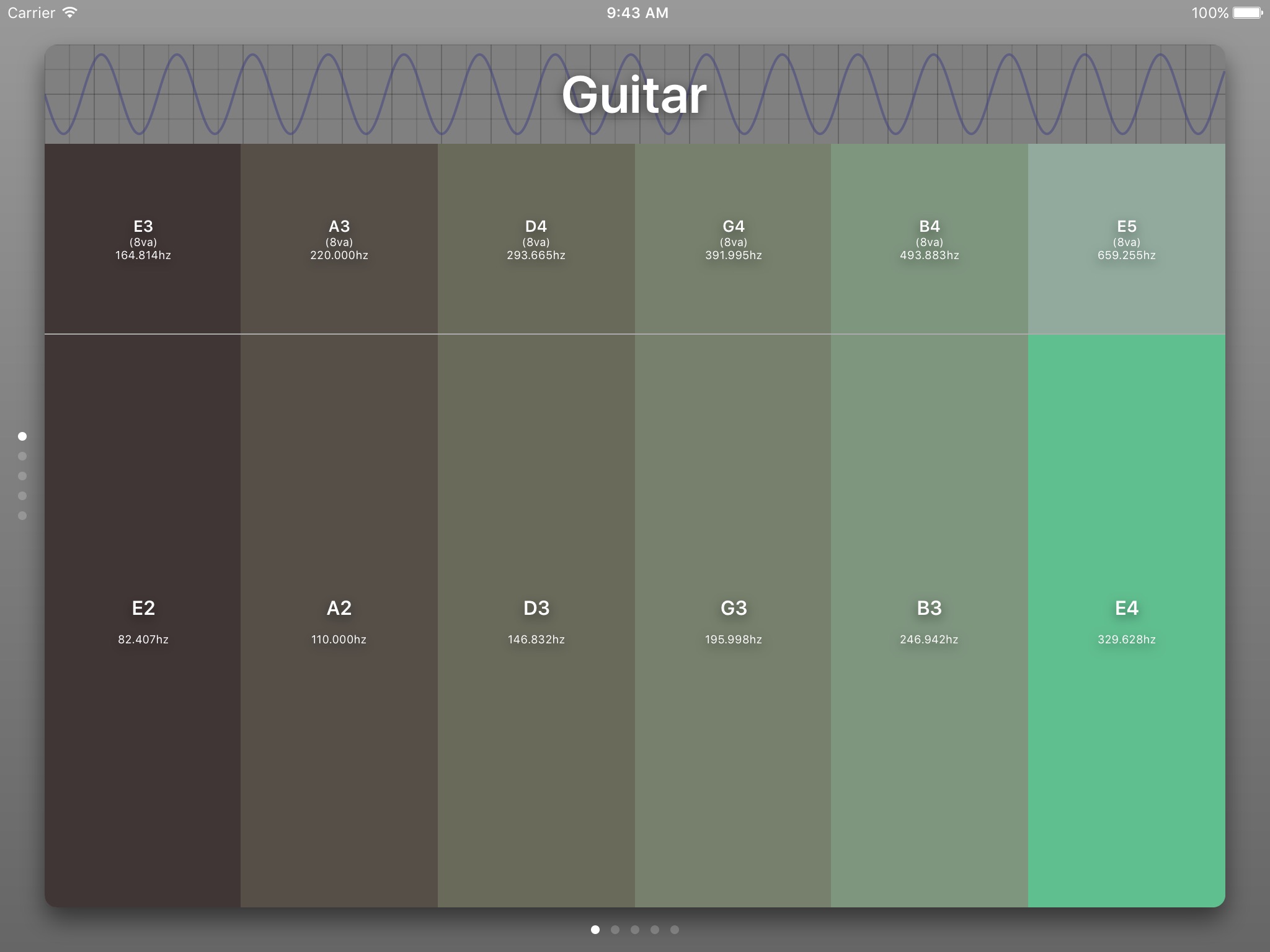 Its easy to use! Swipe left to right to pick your instrument family and then swipe up and down to pick your specific tuning. Tap a note to hear the pitch. Tap the smaller button to produce a pitch one octave above.