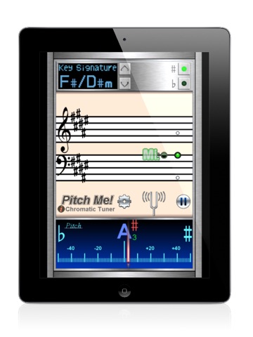 PitchMe not only provides the traditional analog pitch tuning meter but also transcribes detected pitch on the musical staff of a specific key scale. This can really test if you are singing in correct tune.