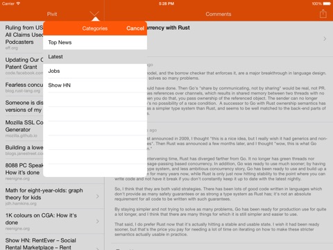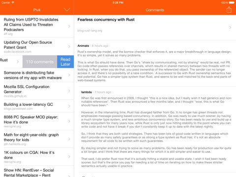 Using the same tech developed for Redeye and Cufflink Browser, Pivit shows you top HN posts and lets you view comments and read entire articles right on your Watch.