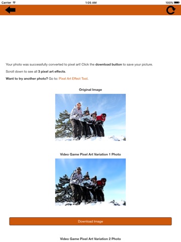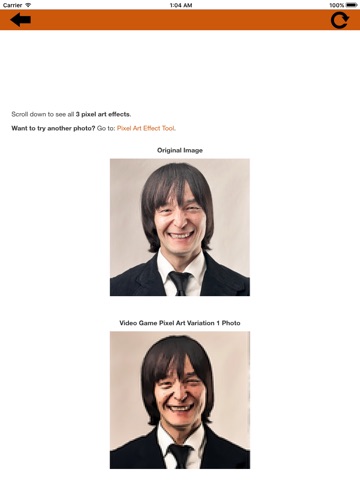 The Pixel Art Effect app lets you turn your photo into video game pixel art. The effect ranges from modern pixel art which has a more subtle pixelated effect (many small pixels) to retro pixel art which is made up of fewer larger pixels.