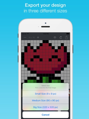 - Use your pixel art as image for your social profiles (WhatsApp, Facebook, Twitter, Instagram...)