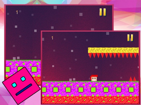 "Pixel Geometry - Dash Hardest Mission" Prepare for a near impossible challenge in the world of Geometry Dash. Push your skills to the limit as you jump, fly and flip your way through dangerous passages and spiky obstacles.