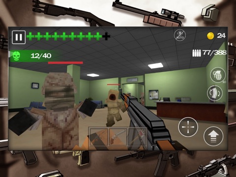 Hunt zombies through easy control(Automatic shooting) and various weapons!
