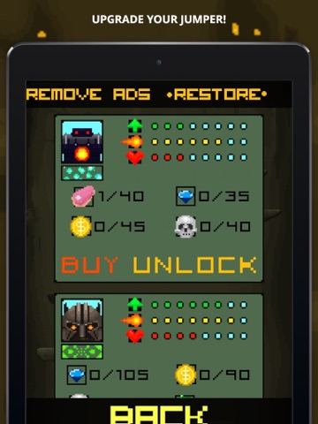 Jump and gun down enemies...in RETRO PIXEL STYLE! Defeat monsters and collect the loot to unlock other awesome characters with special abilities! Land on mega jump boosts and reach even higher scores!
