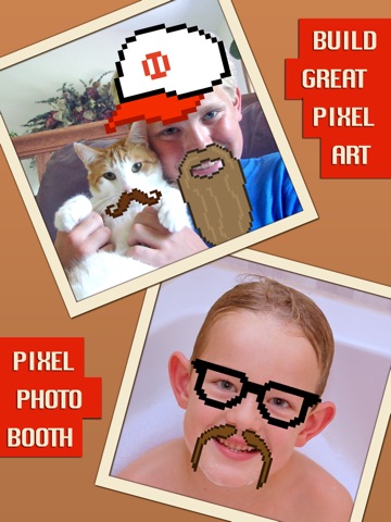 Choose from dozens of 8-bit style stickers to add to your photos then share what you build on Facebook, Twitter or Instagram.