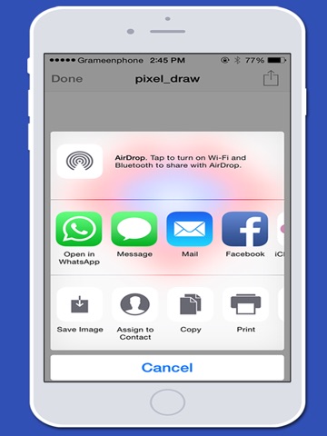 • After drawing, save your pixel art to camera roll and share it with your friend.