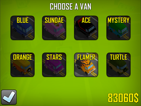 Collect cash while driving and unlock different vans/environments.