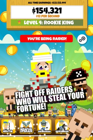 Tap on enemy soldiers to fight them, earn money, and then buy upgrades to level up and become the most successful Jarl army leader of all time! Be careful though, raiders will try to steal from your idle empire with random attacks, but with all of your upgrades and bonuses – you’ll defeat them easily.