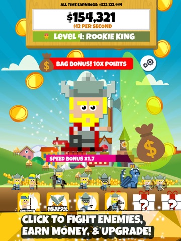 The most addictive viking army building, idle clicking, and FREE pixel war game is here! Click your way past 23 levels to build a massive fortune and a huge army of viking soldiers. See the empire you build grow before your eyes as warriors, archers, and even dragons fill up your base!