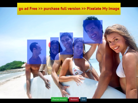 • Pixelate Areas - draw rectangles (tap them again to delete them) over the desired areas and when youre finished press Pixelate Area(s)