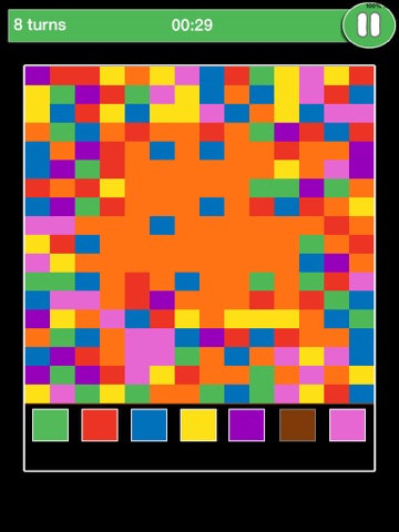 Your goal is to sort out the screen, leaving only one color. Expand ‘your area’ to neighboring pixels, by choosing the color of pixels to be captured next. You win when ‘your area’ spans the whole screen.. When only one color remains.
