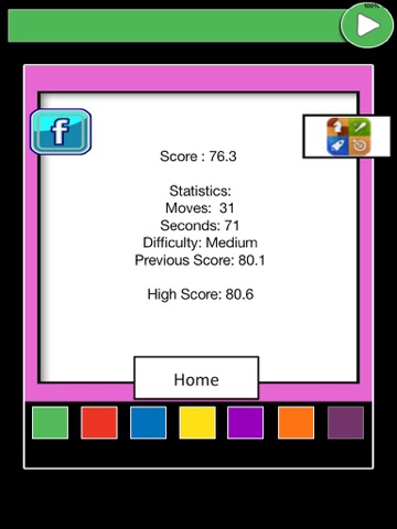 The easy level is with 6 different colors, but if you feel you’re getting tougher, try the Medium (7 colors) or the Hard (8 colors) Levels. The harder the game, the Higher the score that you can achieve.