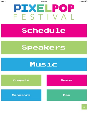 The PixelPop Festival app has the full schedule, session descriptions, speaker bios, demo information, tournament information, an event map, and other important event information.
