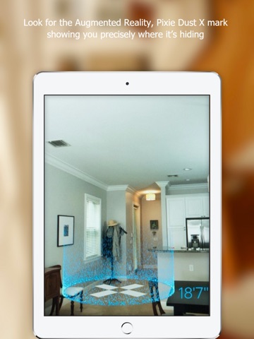 When Pixie finds your item, a Pixie Pointer arrow shows both the direction and distance to the item. If it’s hiding under a pillow or behind a wall, use your camera and see what Pixie sees. The Pixie dust will guide you.