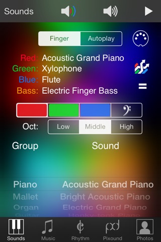 Pixound is a revolutionary form of musical entertainment! Pixound provides a deep musical experience that lets YOU instantly create music using any picture. Its pure fun to play (at any age) and deep because it can be used to play music like youve never heard before. Its so much fun that artist Peter Max bought an iPhone just to have Pixound! Since there is no limit to what pictures you can play from art and graphics to photos and they can be combined with thousands of different musical settings, there is no limit to the music you can create and enjoy. You owe it to yourself to try Pixound!!! By the way, you will learn a lot about music just playing with Pixound so its also an educational tool, sometimes referred to as a Deep Toy.