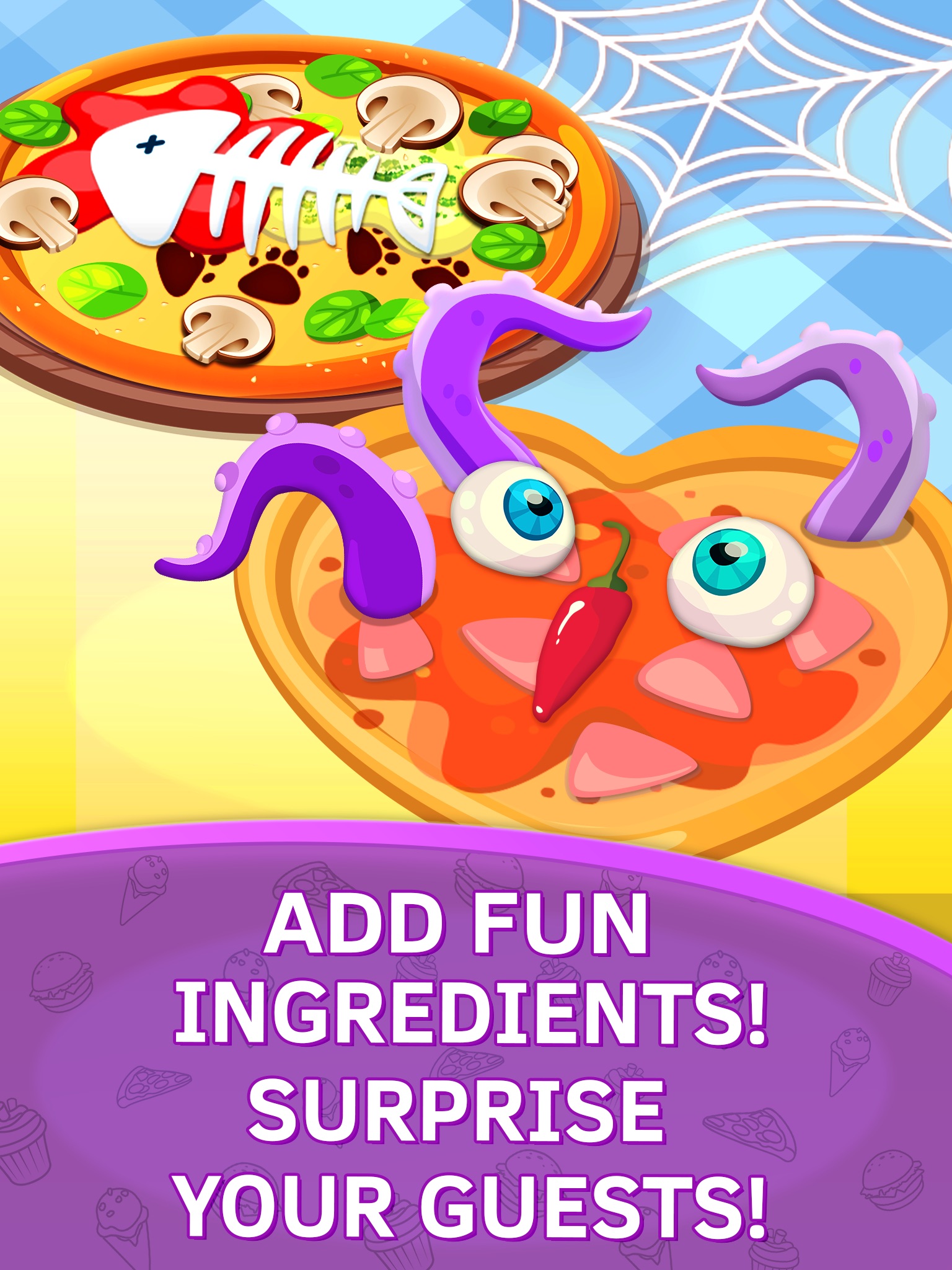 • Use lots of different ingredients. Dozens of possible combinations to make your own pizza games;