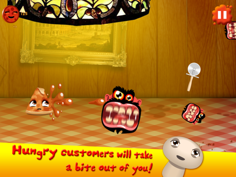 • SQUIRT hot tomato sauce at the hungry chomping customers and the sharp, spinning pizza cutters!