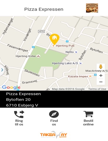 På vores app kan du nemt se vores adresse på kortet, samt telefon nummer