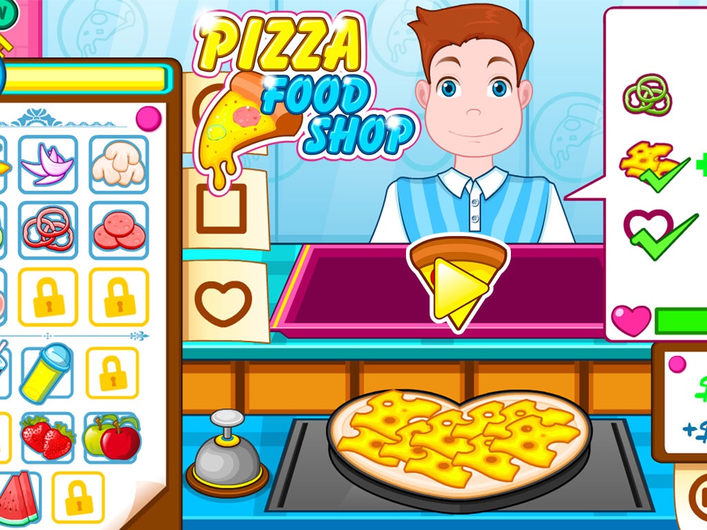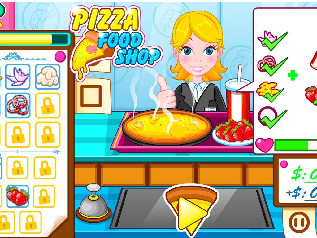There is a very nice pizza shop in our brand new cooking game. You are the owner of the shop. Everyday there will be lots of customers come to your shop to buy pizza. Your task is to cook each pizza according to every customer’s requirements. Some customers may need hamburger, onions,coca cola and something else. You need to cook carefully and fast to let the customers be satisfied with your service and pizza. Or else the customers will become angry and leave your shop. There will be limited time for you to cook every day and the more pizza you cooked the more money that you can earn. If you can serve more customers in the game, you will get three stars every day. Try your best to finish every task everyday for the customer.