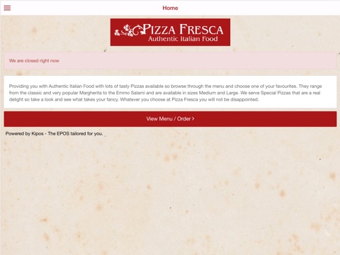 Providing you with Authentic Italian Food with lots of tasty Pizzas available so browse through the menu and choose one of your favourites. They range from the classic and very popular Margherita to the Emmo Salami and are available in sizes Medium and Large. We serve Special Pizzas that are a real delight so take a look and see what takes your fancy. Whatever you choose at Pizza Fresca you will not be disappointed.