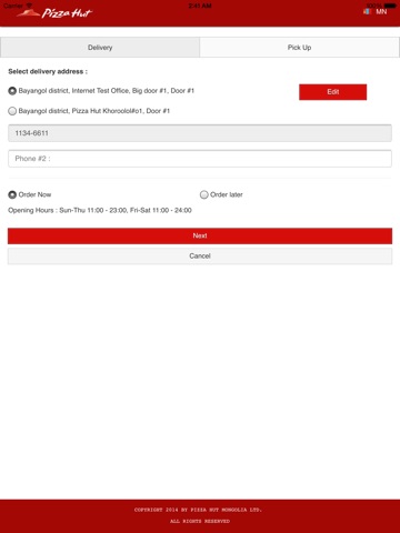 Simply register with your email and password before placing an order or you could also use the same login credential for www.pizzahut.mn