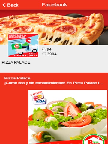 ¡Ordena tu pizza desde nuestra aplicación, tenemos buenas promociones y diferentes tipos de platillos que podemos llevar a la puerta de tu casa! ¡Consulta nuestra FanPage para enterarte de lo mejor que tenemos para ti!