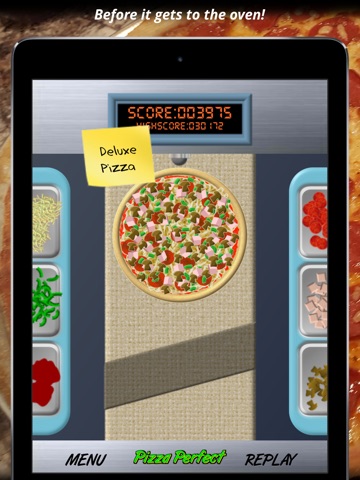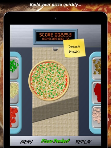 There are several ingredients and types of pizzas that need to be made. Ingredients include sauce, cheese, pepperoni, ham, green peppers and mushrooms. Most of the orders are fairly straightforward, and every order requires that sauce and then cheese (in that order) be placed first and then the remaining ingredients if required. In order to make a deluxe pizza, you will need to drag and drop each ingredient! If a bin runs out of an ingredient, you will need to tap the bin to reset the bins. Every time the bins reset the ingredients locations are scrambled.