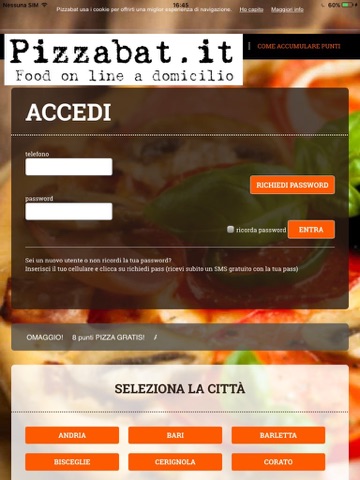 Accumuli punti su acquisti, se giochi a Fantapizzabat, se ci presenti i tuoi amici (dal valore di euro 0,50) utilizzabili per i tuoi ordini.