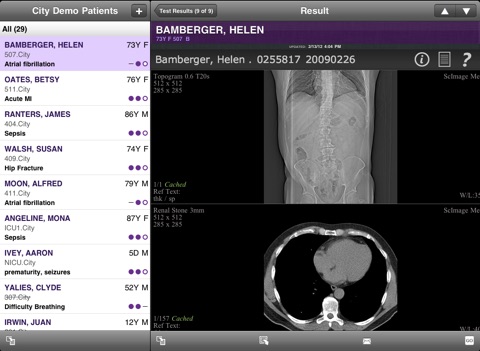 PatientKeeper’s mobile app supports physicians’ clinical workflow and provides anytime, anywhere access to aggregated clinical data from disparate backend systems. The PatientKeeper Mobile Platform overlays your existing hospital systems so physicians can easily access clinical results, view enterprise PACS images, enter orders, enter charges and perform other clinical workflows -- all from within a single app on their iPad®, iPhone® or iPod touch®. To access data, your organization needs to be a licensed PatientKeeper customer.