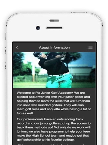 Stay up to date with all of the events and programs at Pla Junior Golf Academy. Down load the app on your device and get real time updates on practice and tournament updates such as cancellations due to inclement weather. You can also chat with other members of the team as well as the coaches.