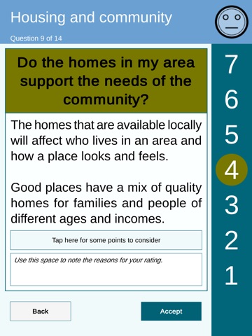 The Place Standard tool provides a simple framework to structure conversations about place. It allows you to think about the physical elements of a place (for example its buildings, spaces, and transport links) as well as the social aspects (for example whether people feel they have a say in decision making).