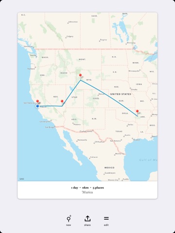 When you go travelling, with Places you can plot your route with ease, simply open the app and drop a new pin when youre somewhere new.