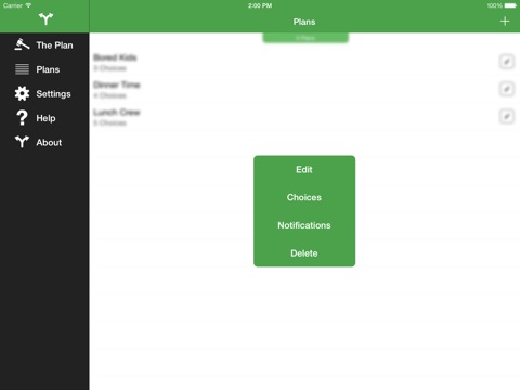 Lets say you are never able to decide where you want to go for dinner. Add a Plan called Dinner Time, then add all of your favorite choices to that plan.